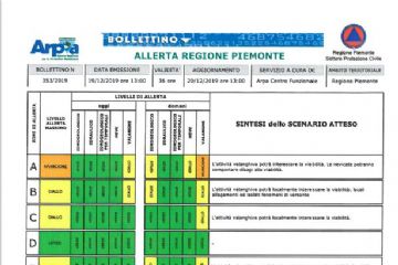Si allega bollettino di allerta meteo, livello di criticità "Arancione", emanato da ARPA Piemonte oggi alle ore 13:00 e valido per le prossime 36 ore.
