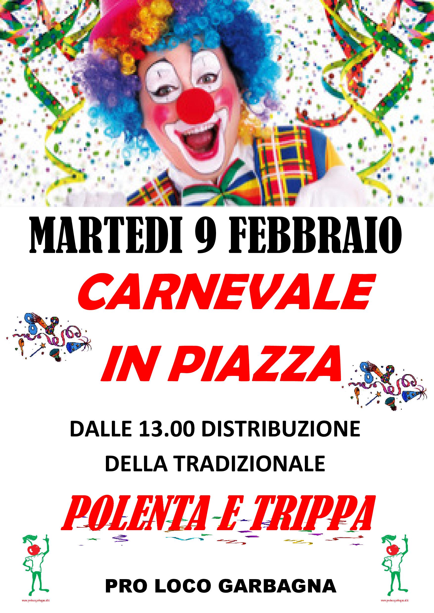 Martedì 9 Febbraio dalle ore 13.00 POLENTA E TRIPPA in Piazza Principe Doria. Manifestazione all'insegna della tradizione che annualmente richiama in piazza numerose persone residenti in paese e provenienti dai comuni limitrofi per degustare un "classico" della tradizione gastronomica: POLENTA E TRIPPA.