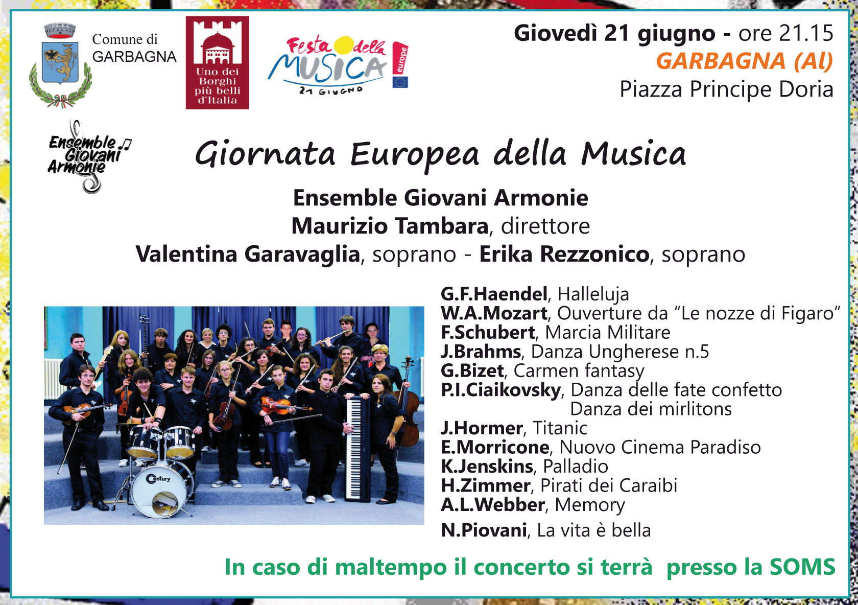 In occasione della giornata Europea della Musica, un concerto Ensemble Giovani Armonie. Direttore Maurizio Tambara