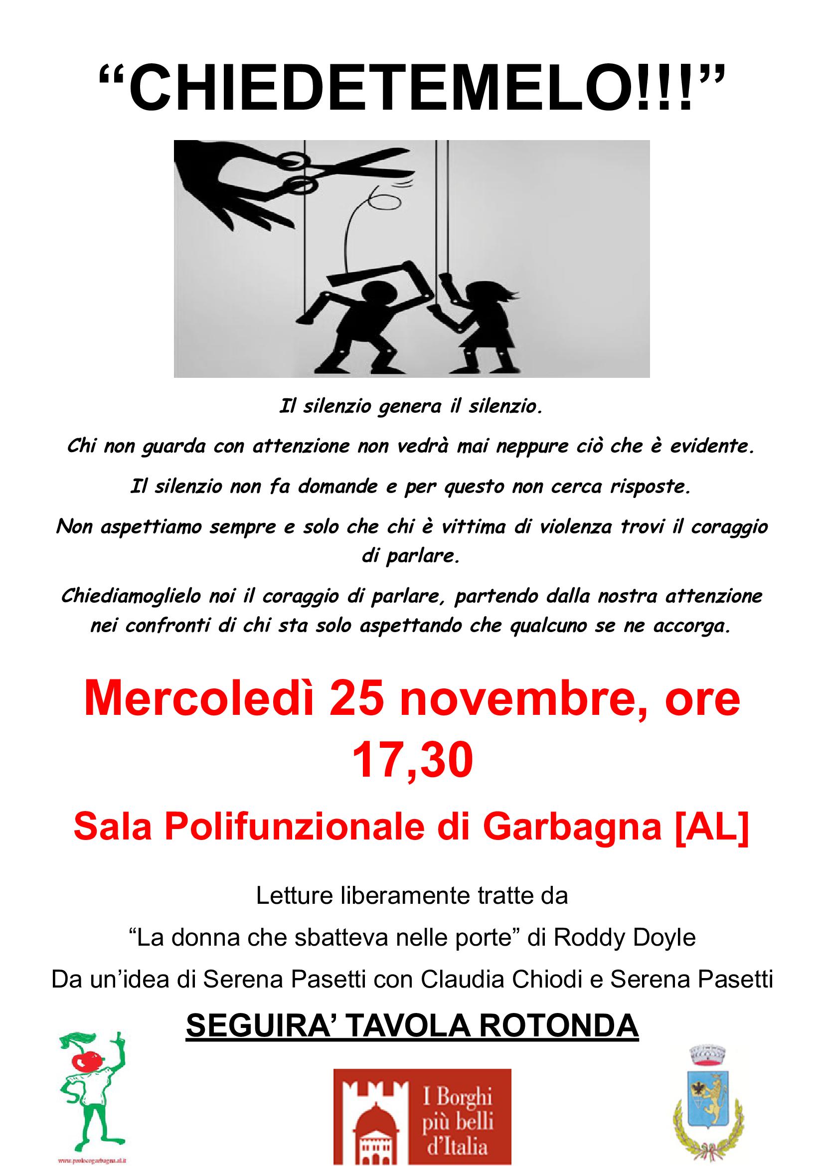 Presso la sala Polifunzionale del comune di Garbagna alle ore 17.30, letture liberamente tratte da "La donna che sbatteva nelle porte" di Roddy Doyle.