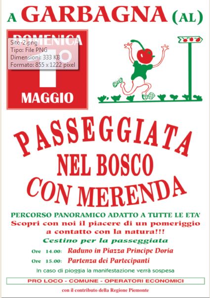 Torna domenica 01/05/2016 la tradizionale passeggiata con merenda nel bosco. Camminata adatta a tutta la famiglia con bellissimo percorso attorno al Borgo di Garbagna e gustosa merenda distribuita ad ogni partecipante.